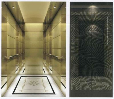 轎門(mén):鈦金鏡面蝕刻 層門(mén):香檳金鏡面蝕刻